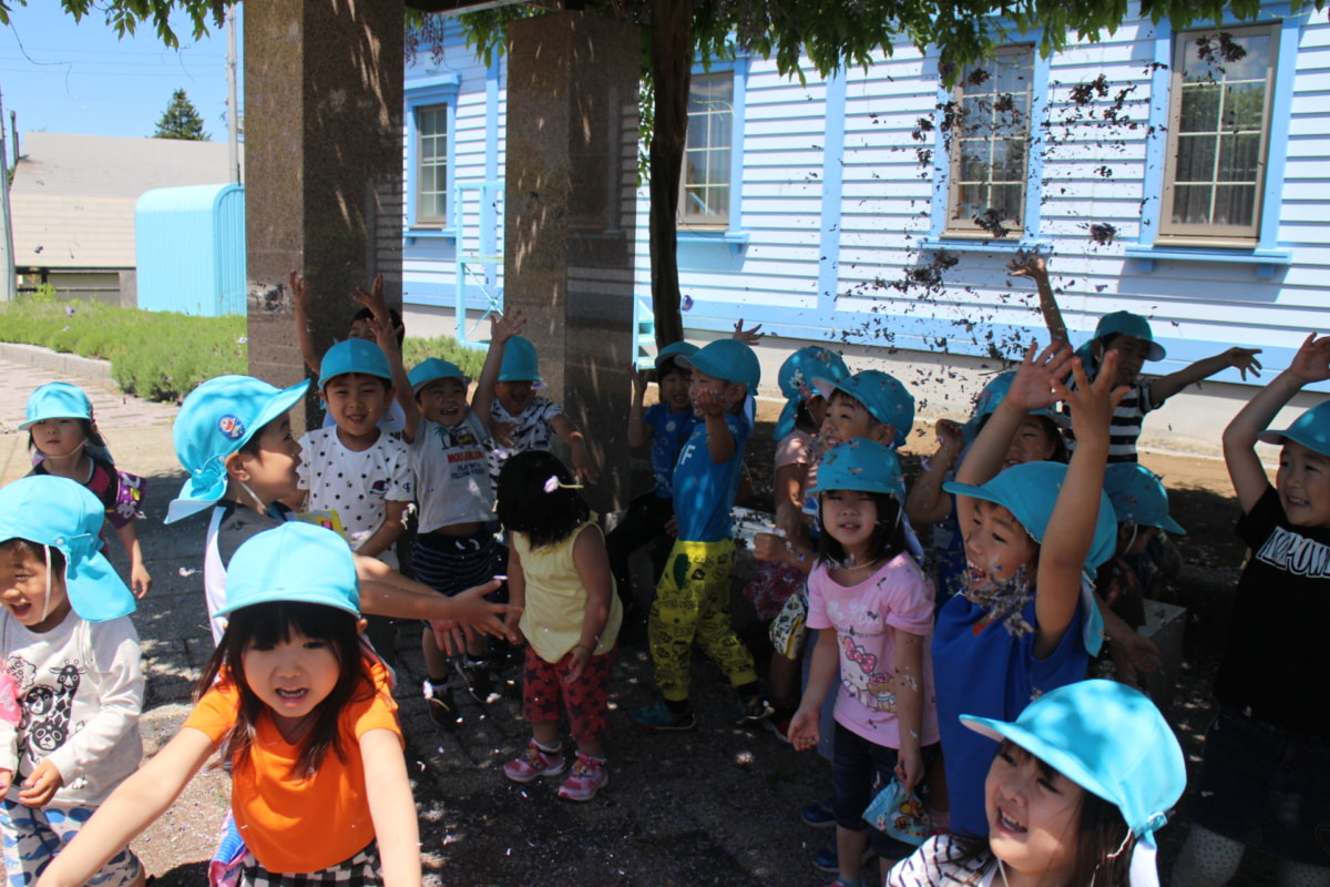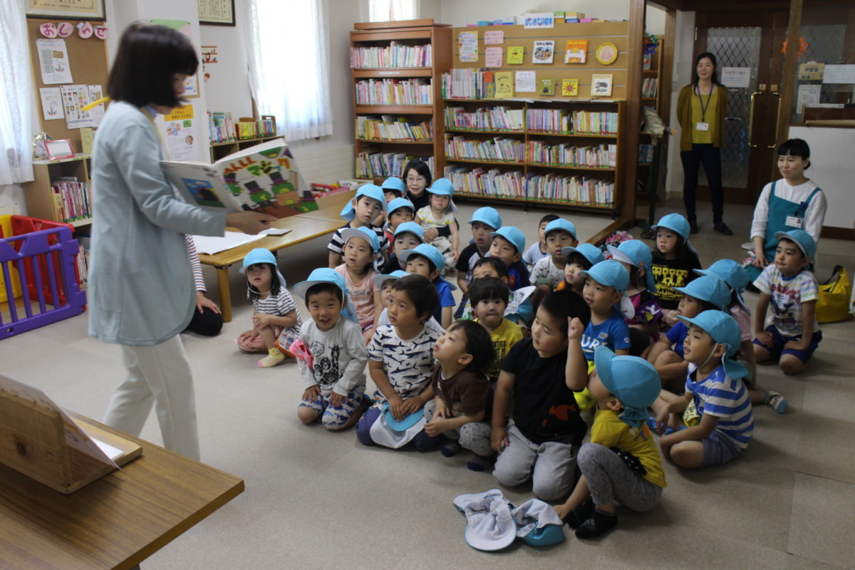 今日は花一会図書館に行って、「ちっちゃいほんだな」に参加してきました。“めくってびっくり” のおススメの絵本を紹介してもらった後、館内も探険しました。帰りには藤の花も見てきましたよ。一人一冊お気に入りの絵本を借りてきて、さっそくお弁当の後に読んでいました。