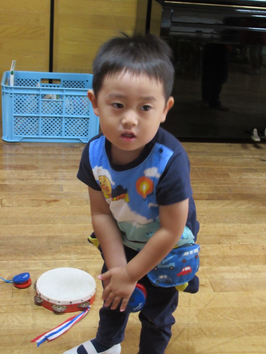 アクセス今日は2歳児教室ひまわり組の開放日にたくさんのかわいいおともだちとお母さんが遊びに来てくれました。“おもちゃのチャチャチャ”に合わせて、すずやタンバリン、カスタネットで演奏会!みんな上手に音を鳴らしていましたよ。