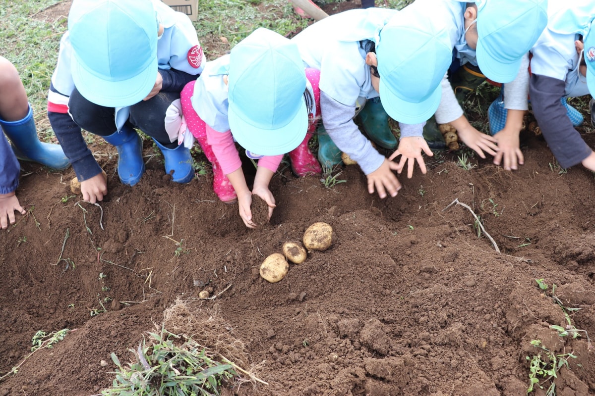 じゃがいもは手で掘って見つけます