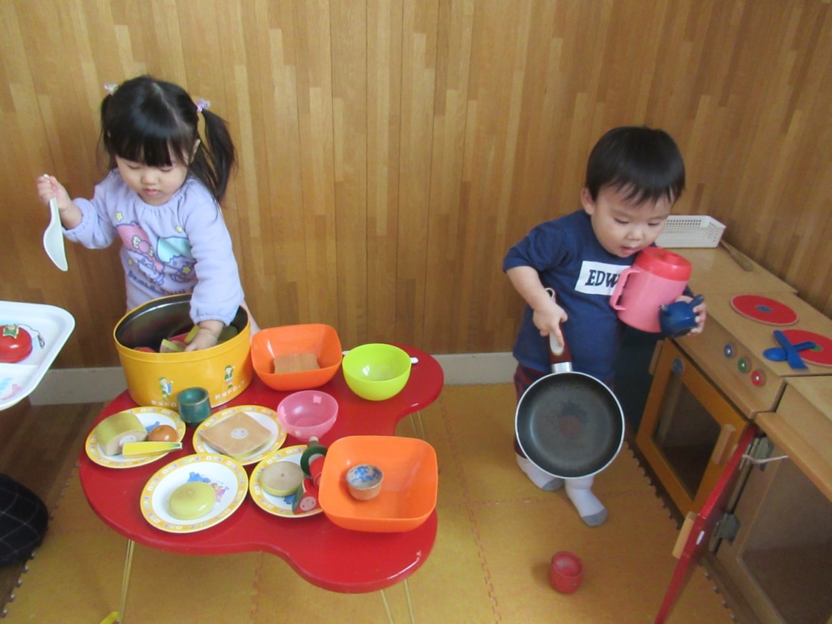 今日は4組の親子さんが参加してくれました。みんなでおやつを食べたり、仲良く遊ぶことができました。
