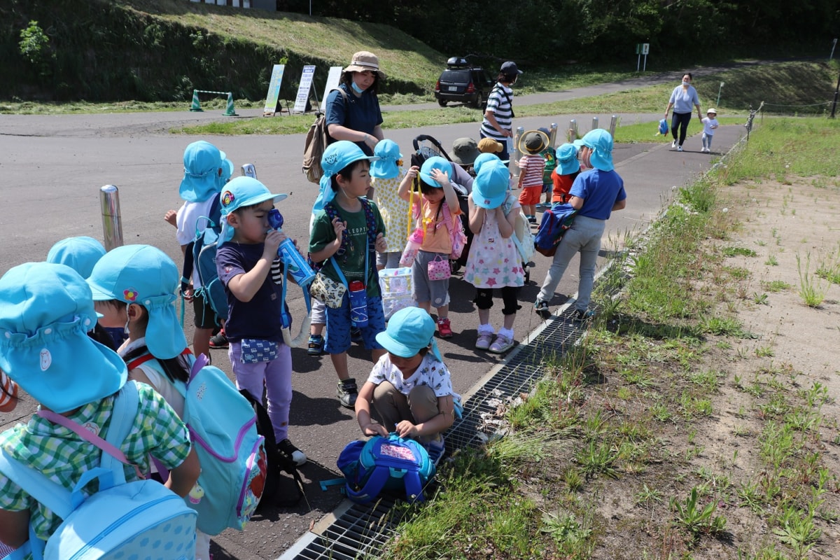 アクセス今日はせせらぎ公園へ遠足!みんなでがんばって歩きました。交通ルールのお勉強にもなりましたよ。おいしいおやつやおにぎりをいっぱい食べ、思う存分公園で遊びました!途中通り雨で雨宿り…カッパやブルーシートを届けて下さったお母様方、ありがとうございました!