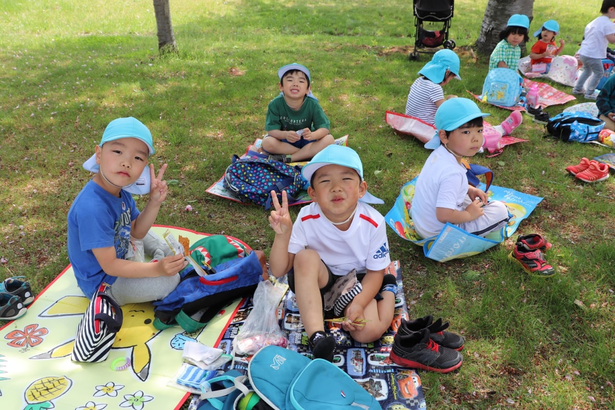 今日はせせらぎ公園へ遠足!みんなでがんばって歩きました。交通ルールのお勉強にもなりましたよ。おいしいおやつやおにぎりをいっぱい食べ、思う存分公園で遊びました!途中通り雨で雨宿り…カッパやブルーシートを届けて下さったお母様方、ありがとうございました!