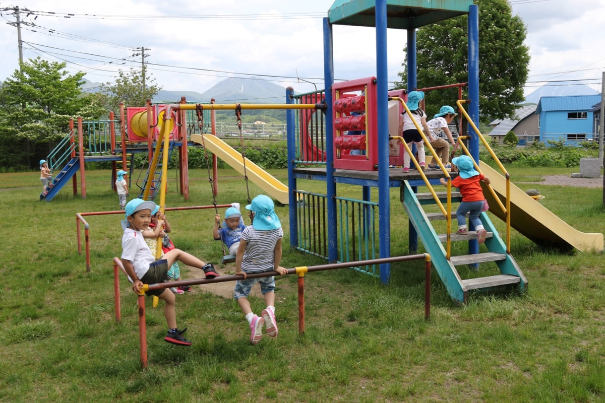遊具で遊んだよ!でもこの後雨が……