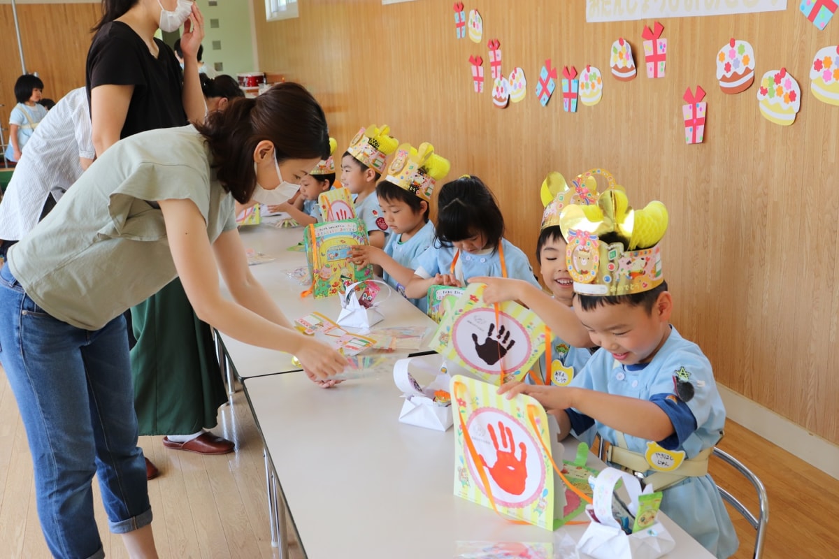 アクセス今日は4・5・6月生まれの誕生会を行ないました。10名のお友だち、お誕生日おめでとう!!