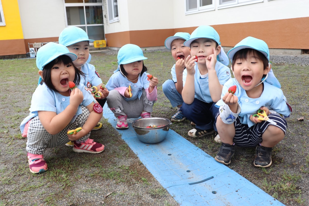 アクセス昨年植えたいちご。秋と春に肥料をまいたいちご。5株ですが、組別にハサミでチョキンと摘んで、お弁当の時に食べました。ちょっぴり甘くてちょっぴり酸っぱい初夏の味がうれしいね。