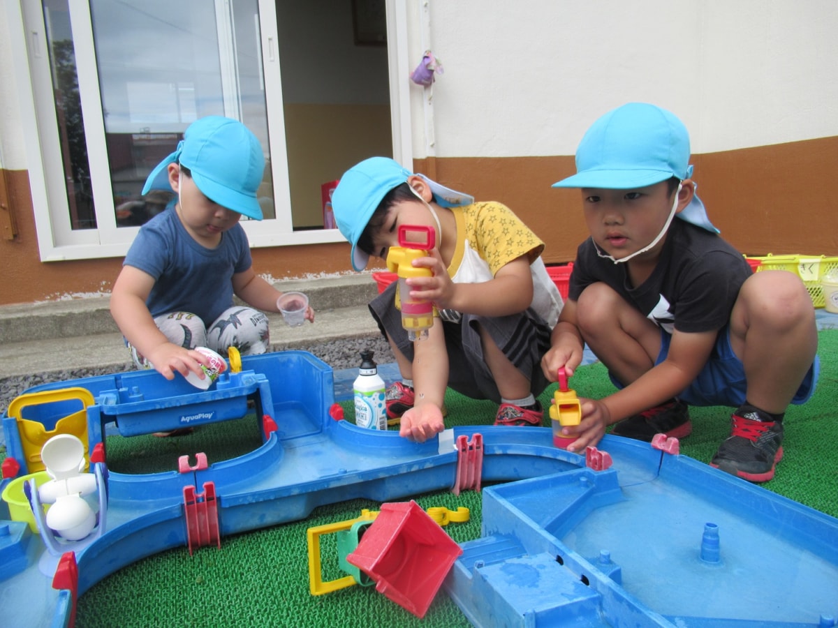 水遊びをしたり、虫取りをしたり、やりたい遊びを見つけて楽しんでいます!