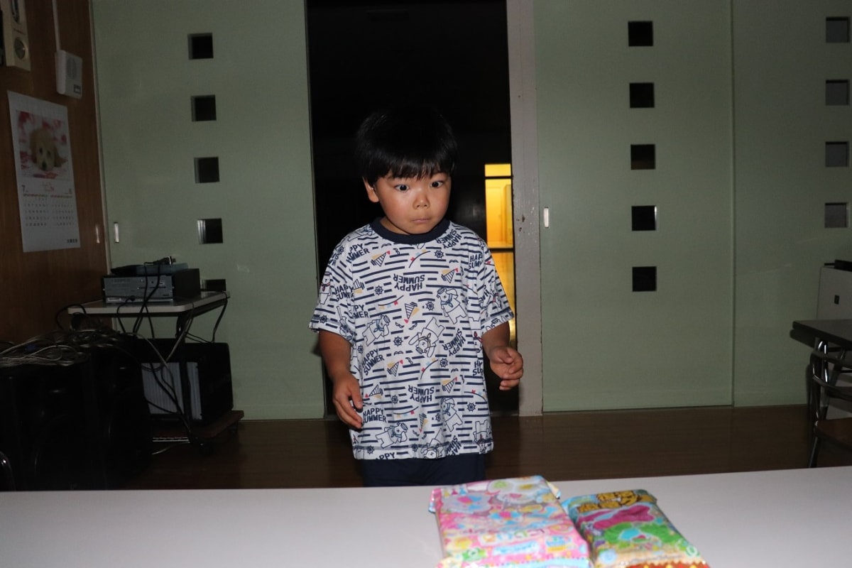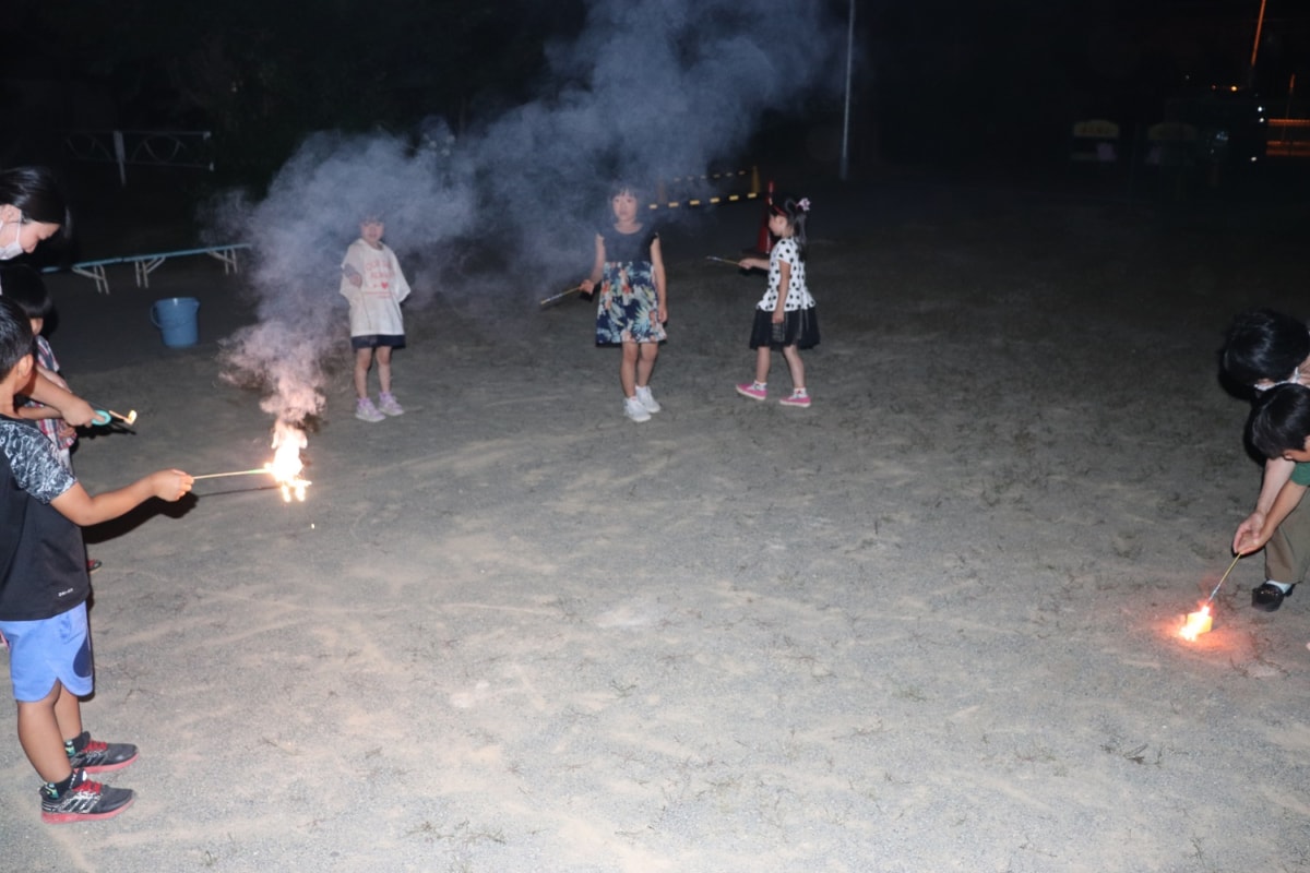 花火を楽しんだ後は、お待ちかねの肝だめし!ドキドキしながらおやつをもらいに行きました。