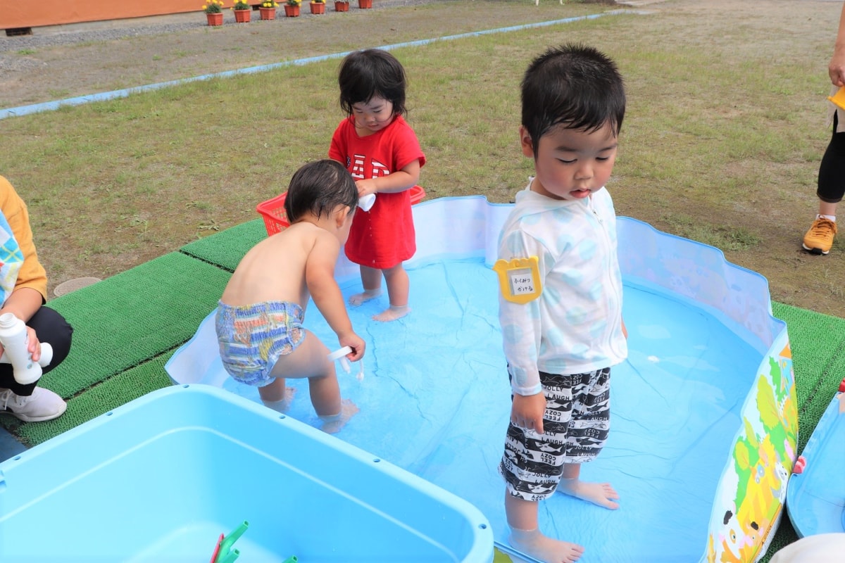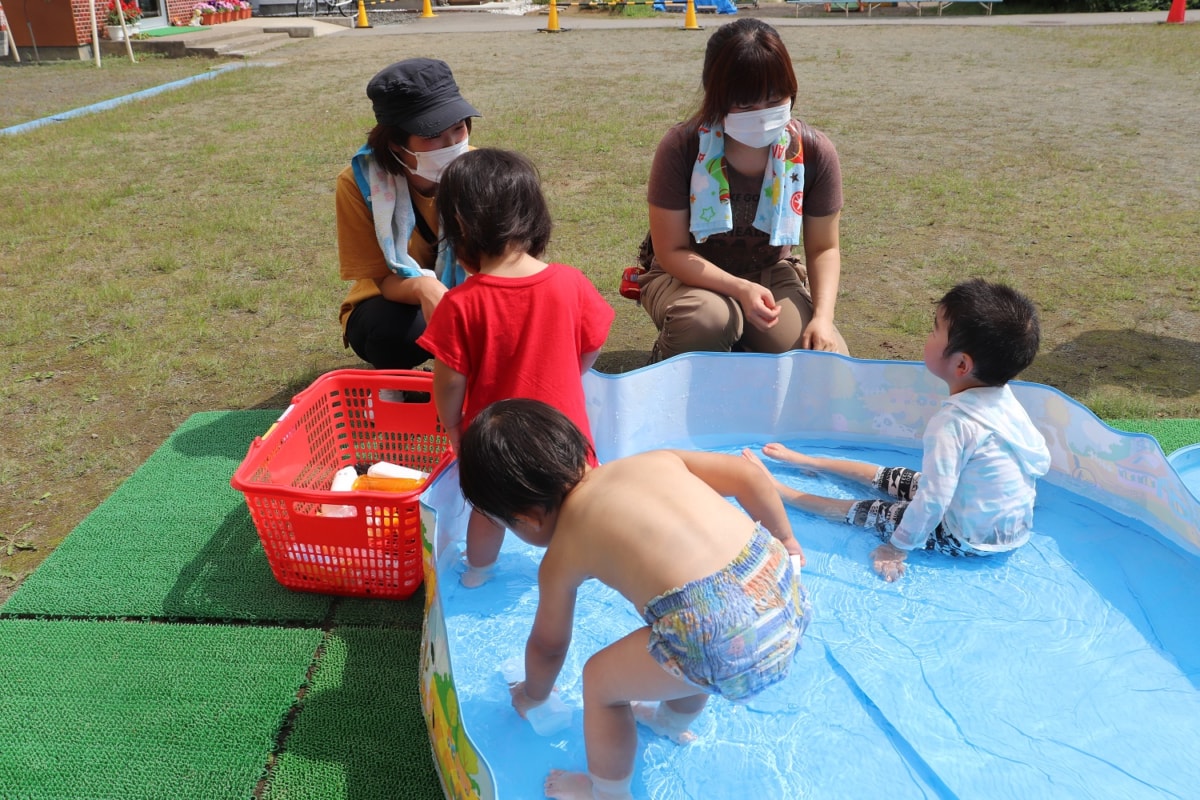 今日はひまわり組の開放日でした。3人のおともだちが遊びに来てくれました!気温も高く、冷たい水がとても気持ちよく感じました。