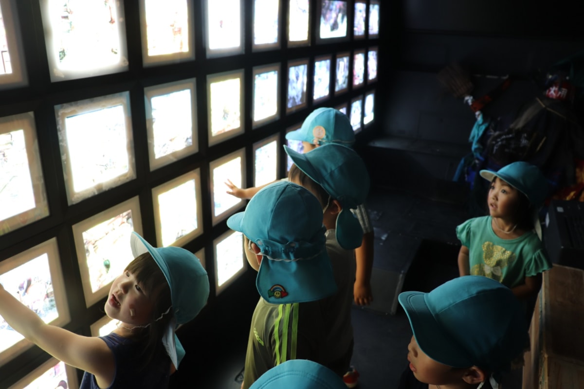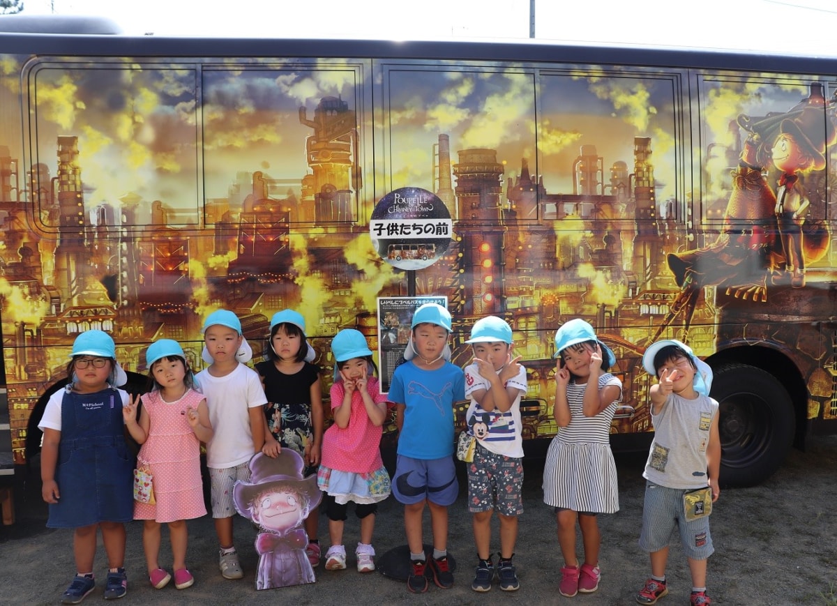 アクセス絵本「えんとつ町のプぺル」の移動光る絵本展 “プぺルバス” がひばり幼稚園にもやって来ました。バスの前で写真を撮ったり、バスの中も見学したり、楽団の方が絵本に関連した曲を演奏してくれたりと、絵本の世界観を十分楽しみました♪