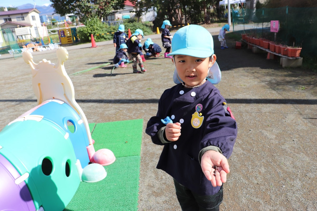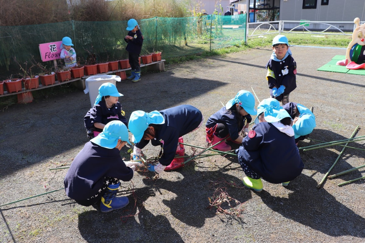 次は、きれいに咲いたきく組の朝顔の片付け。暑い夏の日、朝顔の花で色水あそびもしたね。