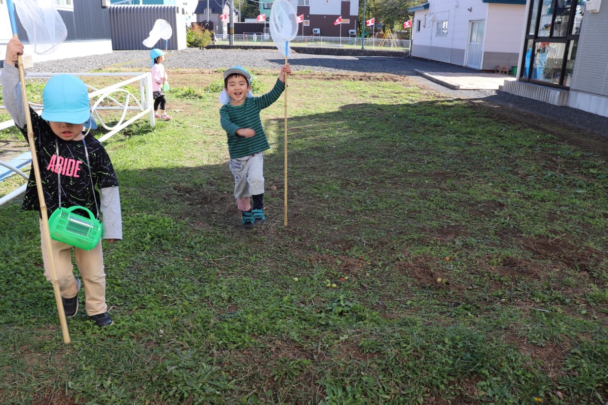 水をあげて、草取りをして、すくすく育ったじゃがいもやトマト、とうもろこしにありがとう。きれいになったひばり畑で早速虫捕りをしました。