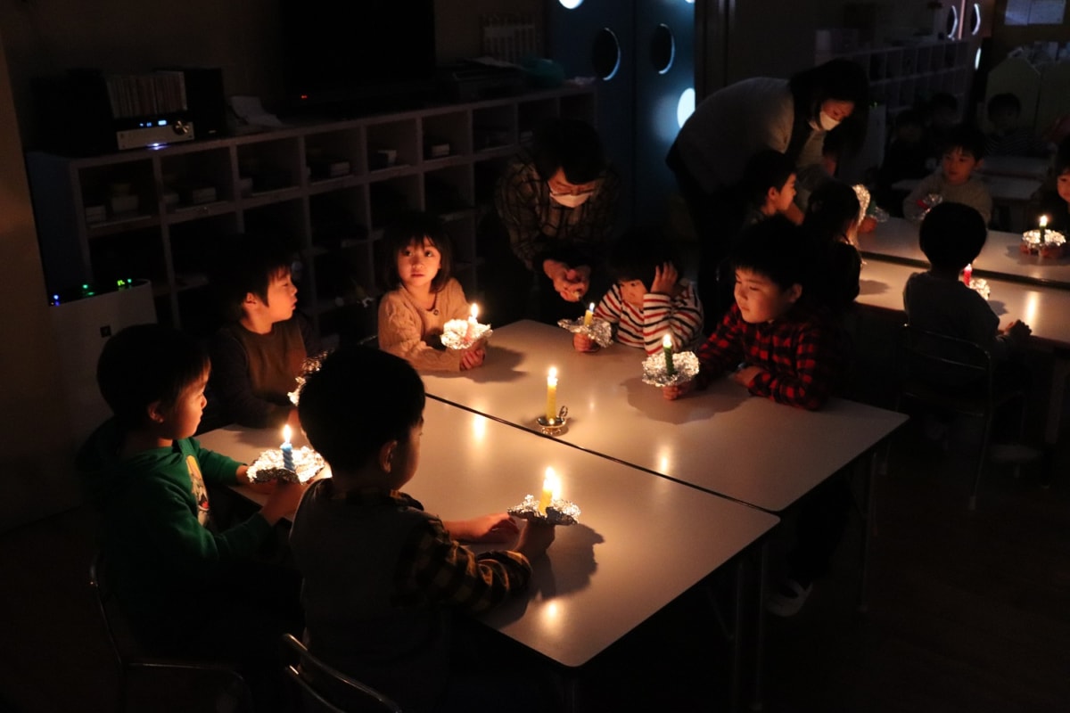 キャンドルサービス。やさしく揺れるキャンドルの炎を見つめながら「きよしこの夜」を聞き、みんなで楽しめる事に感謝です。