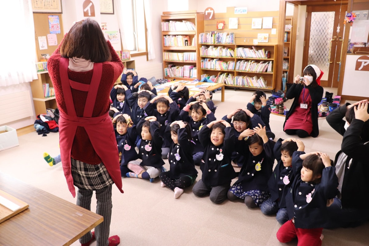 アクセス今年最後のちっちゃい本だながありました。花一会の職員の方がサンタクロースに変身し、子ども達を迎えてくれ、子ども達も大喜び♪