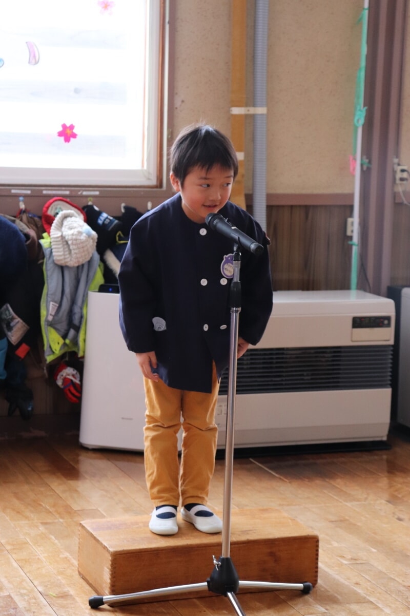 最後に年少ゆり組の「おわりのことば」でおわかれ会はおしまいです。ゆり組、かっこよく、せ~の!