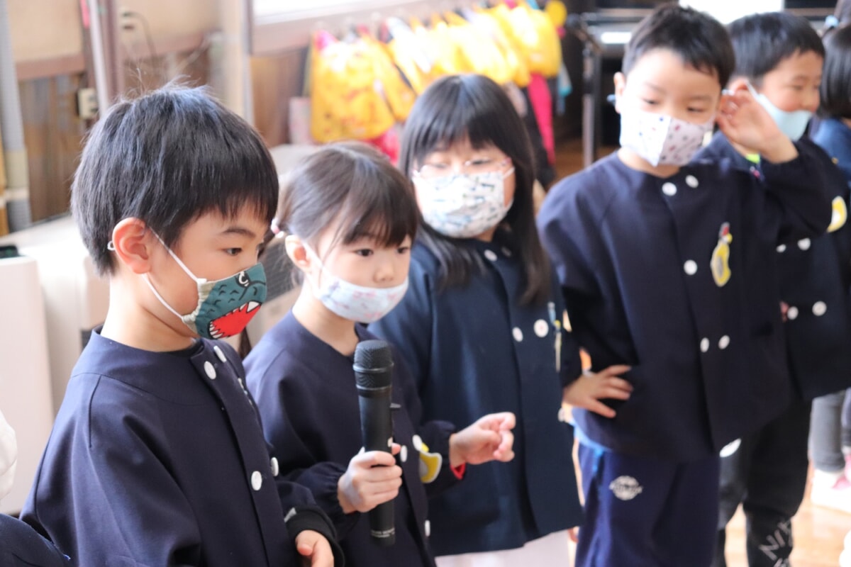 年中ふじ組が進行。マイクで上手におはなし。