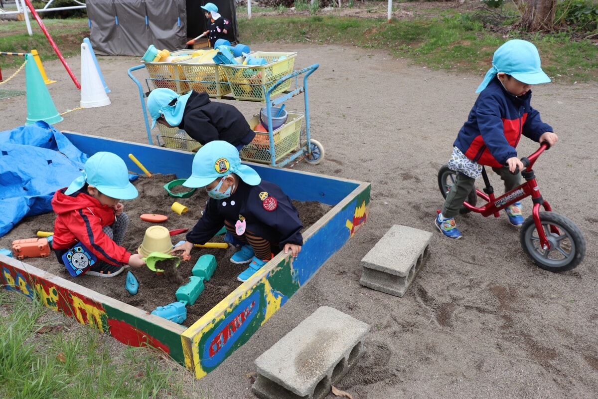 砂場で道路工事!?バランスバイクに乗って「オットット!」バランスとって、とって!