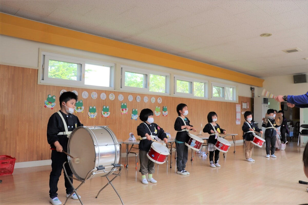 今日は、4月・5月・6月生まれのお友だちのお誕生会を行いました。今回は10名がお誕生児でした。会場飾りのカエルは、もも、ゆり組が作ってくれました。
