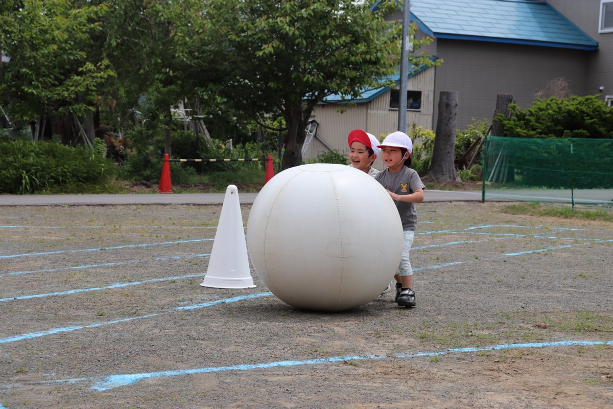 6月14日 “それいけゴロゴロ”と大玉を転がし、「う~ん、なかなかうごかな~い!」