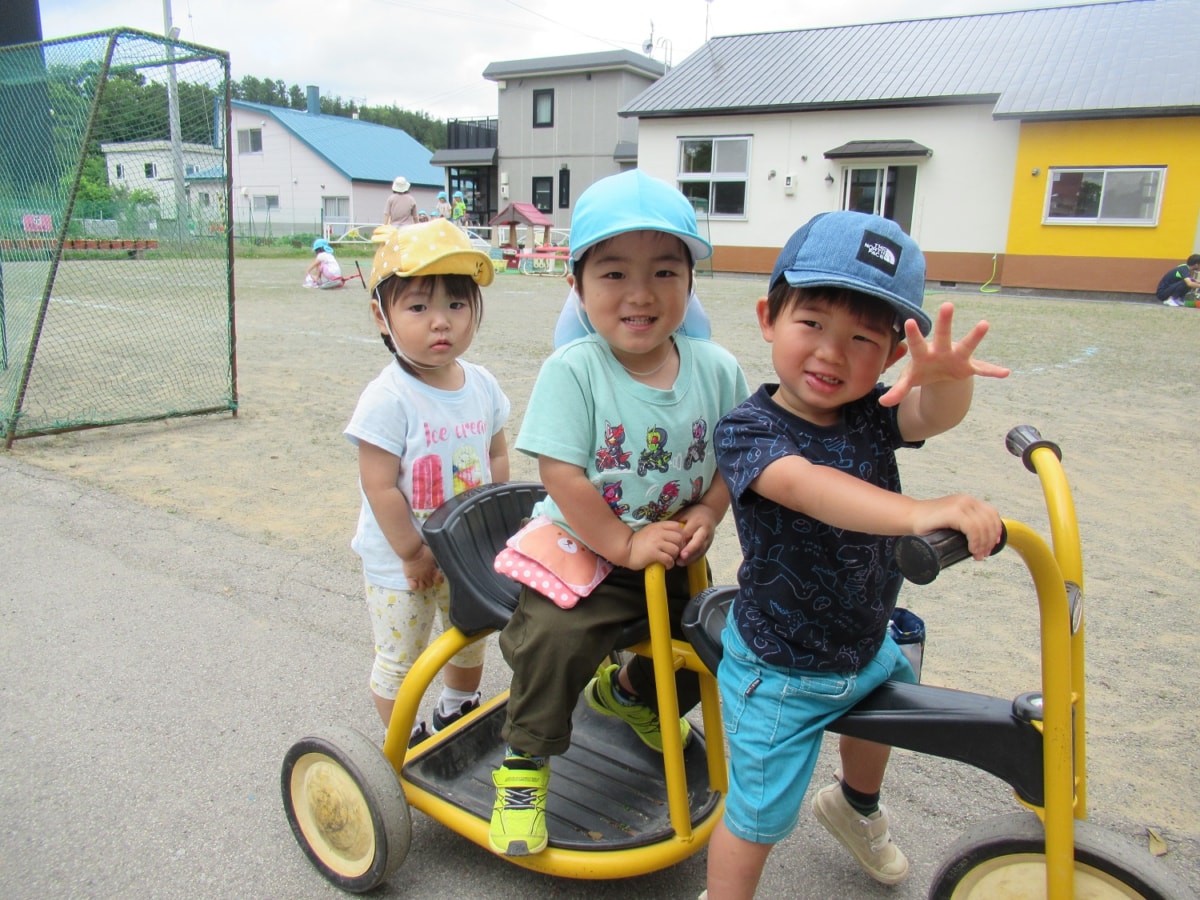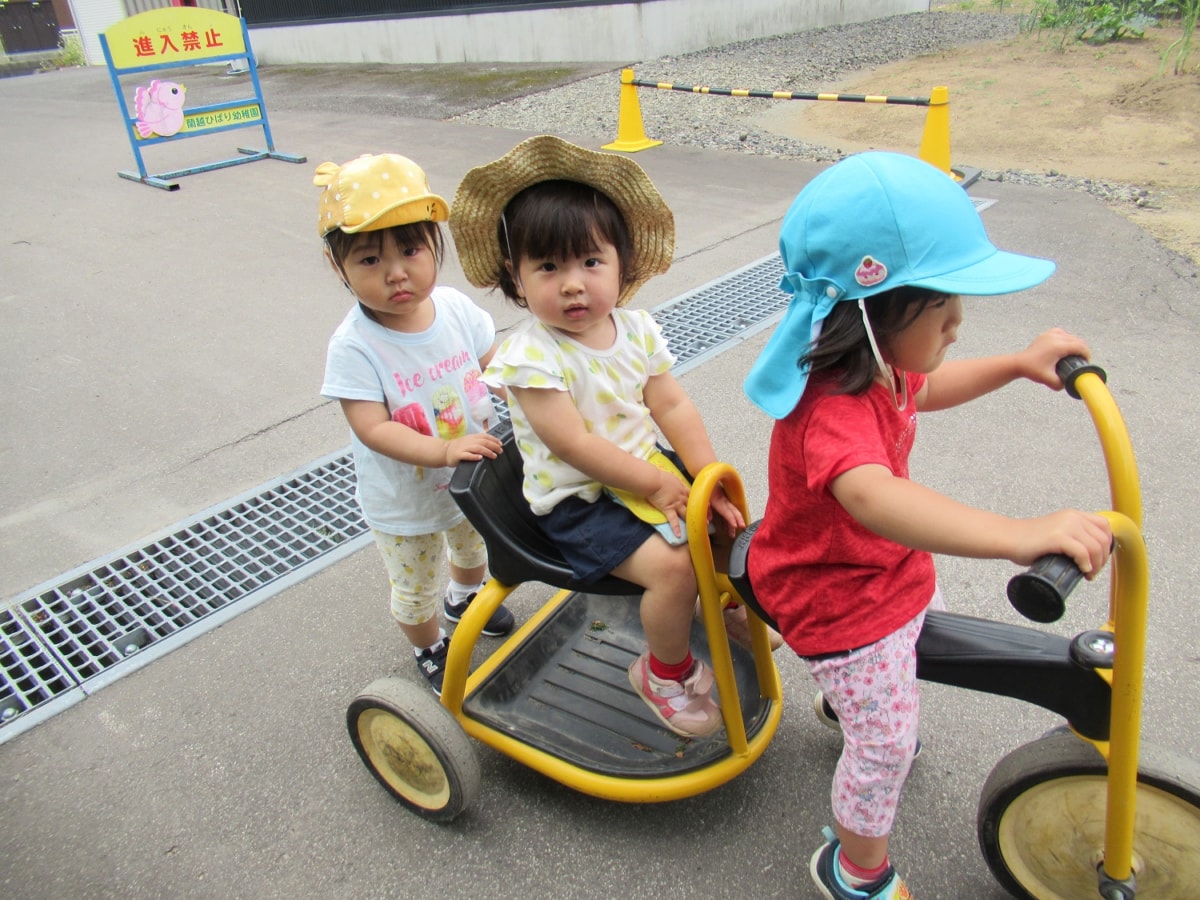 木曜日にはマイライダーに乗って旅行ごっこもしました♪ 先生写真撮って~!