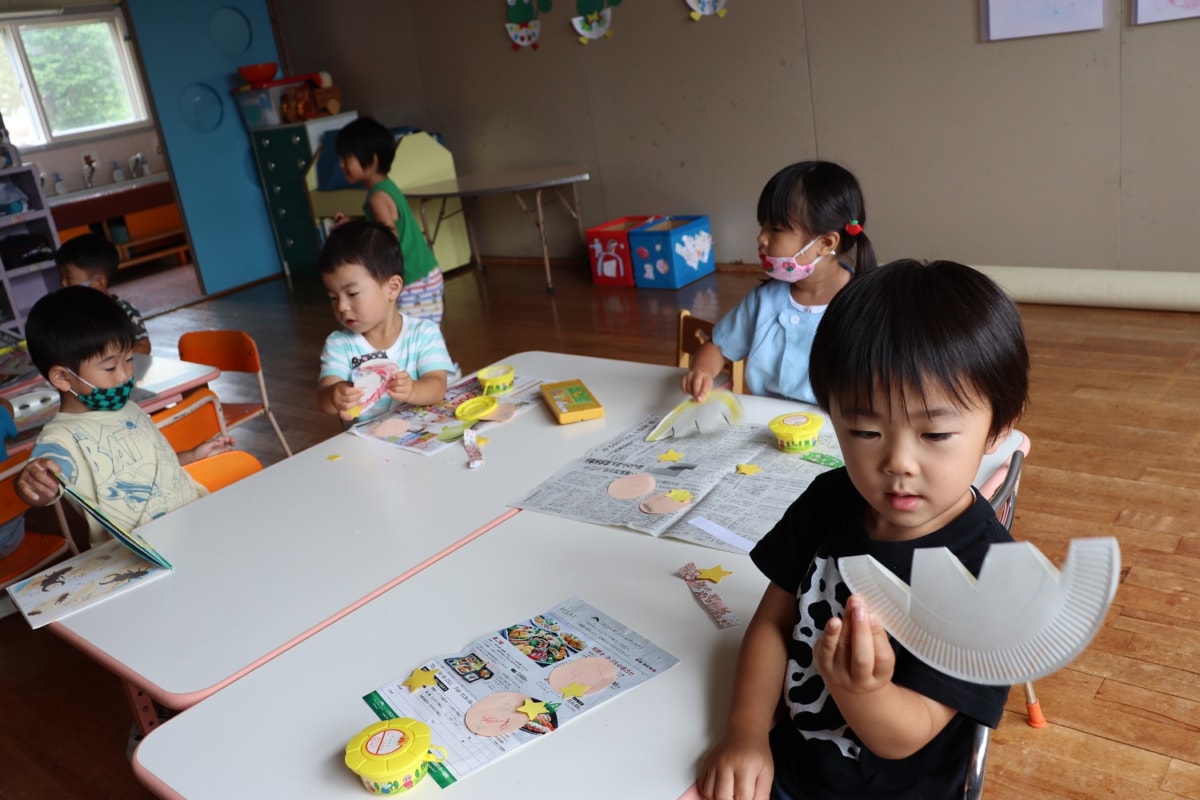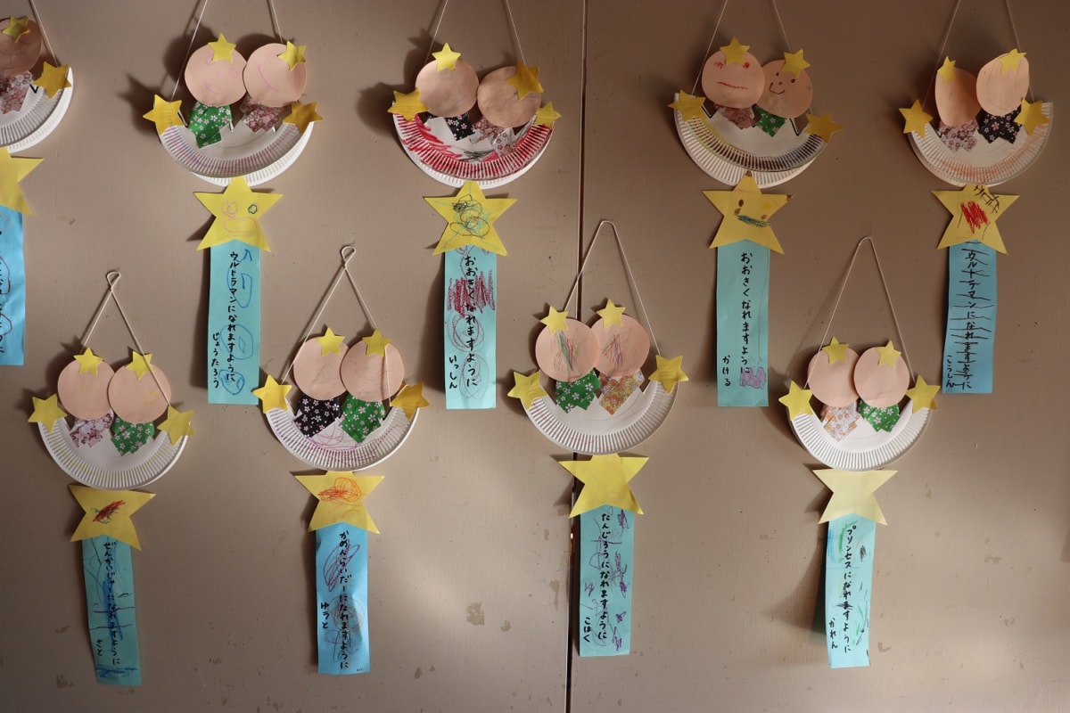 2021.07.06 園ブログ 願いを込めて… 7月7日は七夕です。北海道では8月7日ですが、今日はもも組・ゆり組で紙皿を使って七夕飾りを作りました。 上手にできました! 願いごとを短冊に込めて… 叶うといいね♪