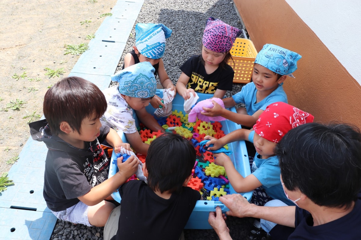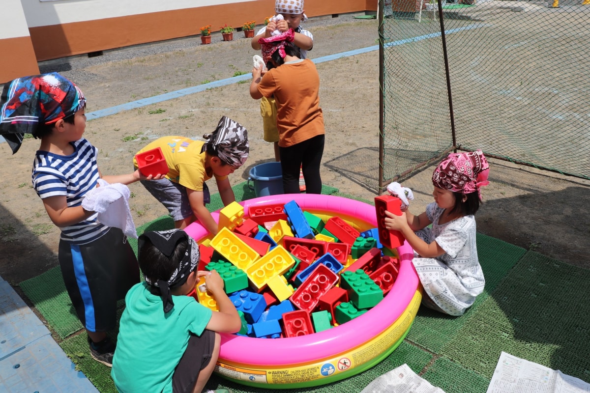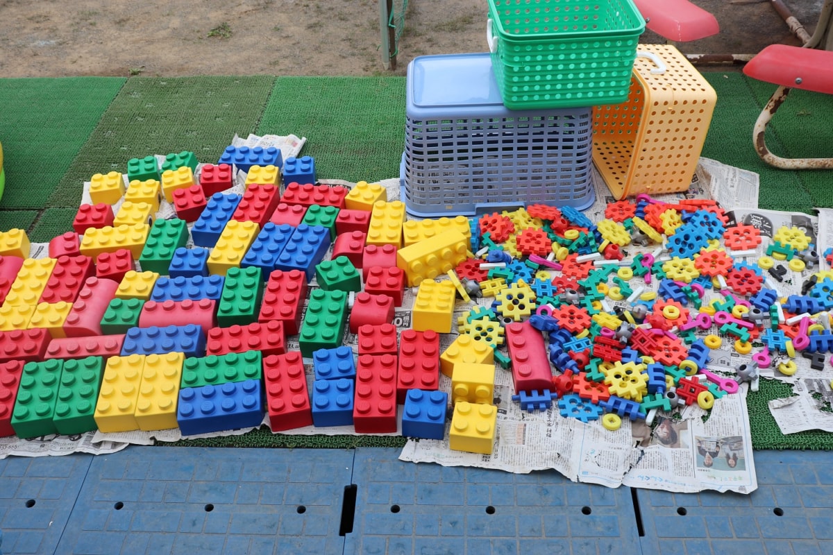 ふじ組・きく組は、もも組・ゆり組にあるブロックを洗ってくれました。